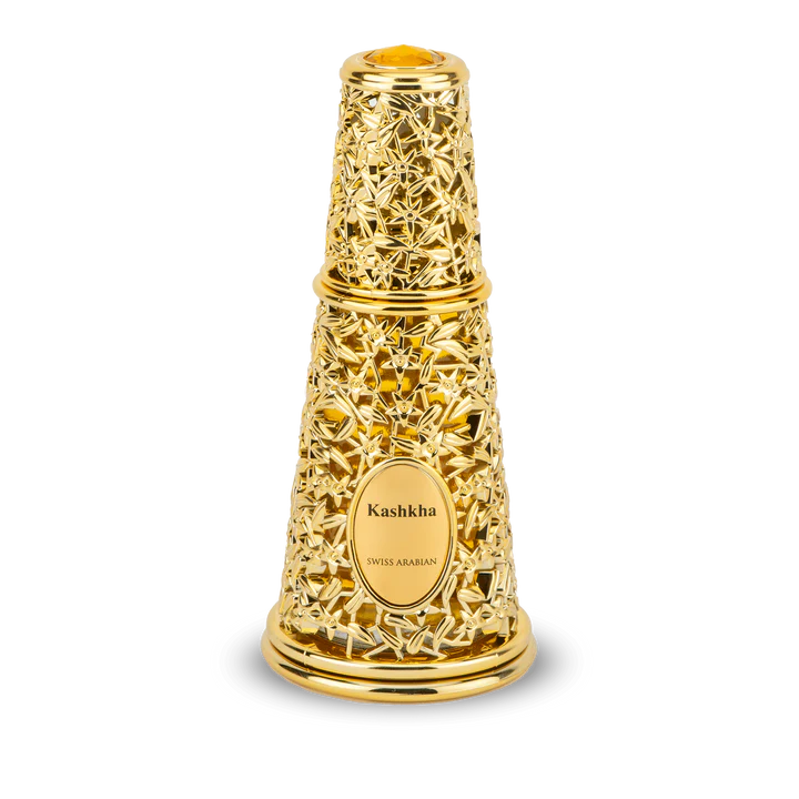 Kashkha est un parfum fruité et épicé à l'oud, inspiré par l'homme et la femme modernes qui incarnent le style dans tout ce qu'ils font. Lorsqu'ils portent Kashkha, ils savent que leur parfum est aussi élégant qu'eux. Kashkha libère ses notes une à une, telles des bulles parfumées. S'ouvrant sur des notes fruitées vives et pures, on sent la bergamote, la pomme croquante et la cannelle chaleureuse flotter dans l'air. Tandis que ce départ enchanteur vous transporte dans un sentiment de pur bonheur, la fragrance délicieuse fusionne délicatement et harmonieusement avec les notes chaudes et épicées de la cardamome, du bois d'agar doré et du précieux safran. La fragrance évolue en douceur vers des notes de cèdre vif, d'ambre douillet et de musc tendre, laissant une empreinte élégante sur tous ceux qui la portent. Kashkha est un parfum unisexe idéal pour les saisons plus fraîches. Le parfum du style.
